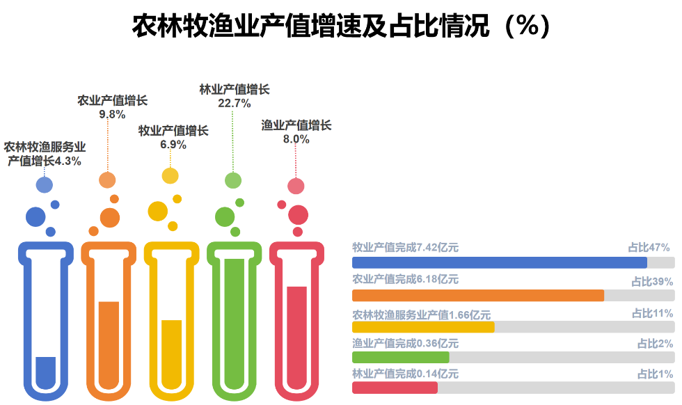 圖4農(nóng)林牧漁業(yè)產(chǎn)值增速及占比情況圖