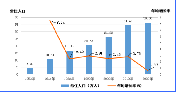 根據(jù)第七次全國(guó)人口普查結(jié)果,現(xiàn)將2020年11月1日零時(shí)海拉爾區(qū)常住人口的基本情況公布如下:一、常住人口海拉爾區(qū)常住人口[1]為 365012 人。二、常住人口增長(zhǎng)海拉爾區(qū)常住人口與2010年第六次全國(guó)人口普查的344934人相比增加了20078人,增加5.82%,年平均增長(zhǎng)率為0.57%。圖1-1 歷次人口普查常住人口及年均增長(zhǎng)率