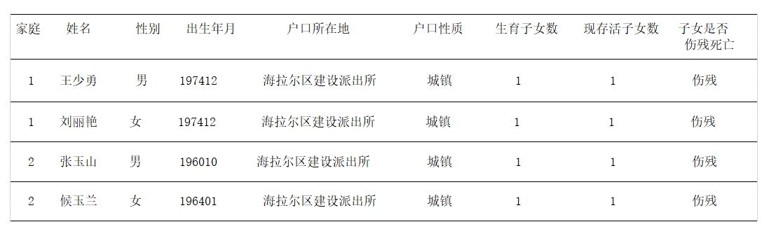 經(jīng)審核,下列4名同志(2戶家庭)符合計劃生育特扶家庭一次性扶助金條件,現(xiàn)予以公示。公示日期:7月22日至7月28日。如發(fā)現(xiàn)被公示對象基本情況不屬實的,請如實反映。鎮(zhèn)(辦事處)舉報電話:04708288205,區(qū)衛(wèi)健委舉報電話:04708116645。